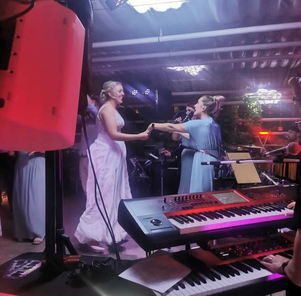 2 Personen aus der Band haben vor der Party schon unsere Trauung begleitet und auch das war beeindruckend. Die Lieder und Stimmgewalt der Sängerin war phenomenal und wurde von zahlreichen Gästen explizit gelobt. Für uns wurde die Trauung dadurch noch schöner und emotionaler.